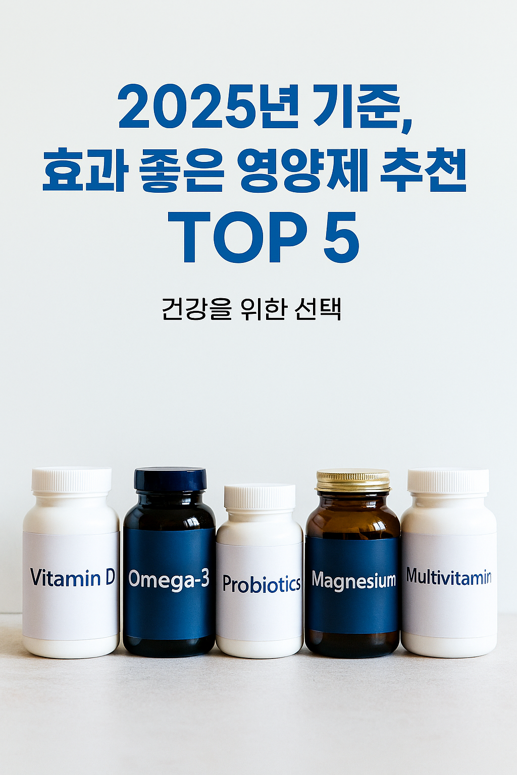 2025년 기준, 효과 좋은 영양제 추천 TOP 5– 건강을 위한 선택 2025년을 맞아 건강에 대한 관심이 그 어느 때보다 높아지고 있습니다. 특히 바쁜 현대인들에게 영양제는 부족한 영양소를 보충하고 면역력을 강화하는 데 필수적인 아이템으로 자리 잡았죠. 하지만 수많은 제품 중 어떤 영양제를 선택해야 할지 고민되는 분들이 많습니다.그래서 오늘은 2025년 기준으로 효과가 입증된 인기 영양제 TOP 5를 소개해드릴게요. 각 제품의 효능과 추천 대상까지 정리했으니, 본인의 건강 상태에 맞는 영양제를 선택해보세요 🌟 효과 좋은 영양제 추천 TOP 5순위 영양제 주요 효능 추천 대상 1비타민D면역력 강화, 골밀도 유지실내 생활 많은 분2오메가 3혈관 건강, 뇌 기능 개선중장년층, 수험생3유산균장 건강, 소..