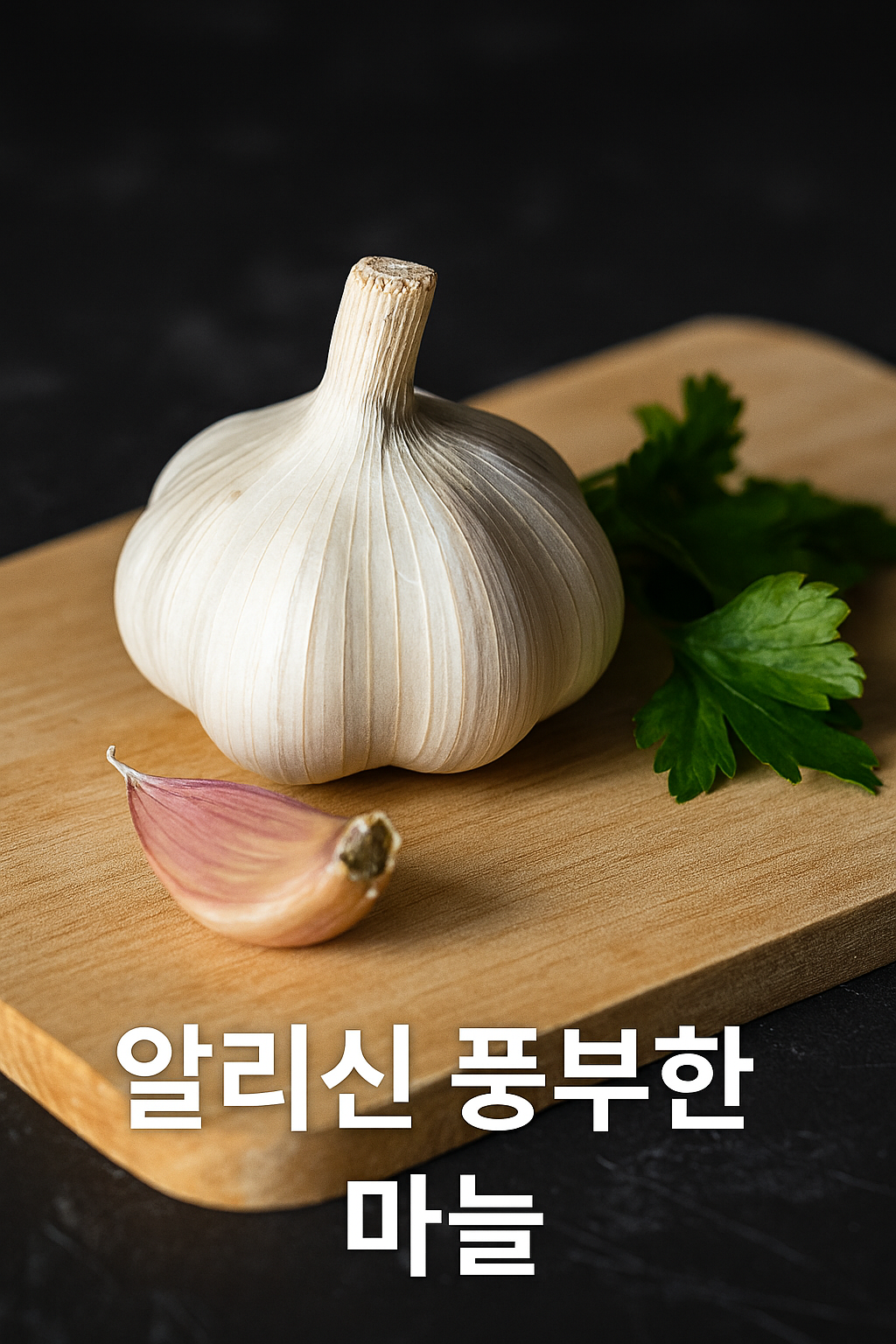 - 마늘: 알리신 성분이 강력한 항균·항바이러스 작용을 하여 면역력 강화에 도움.